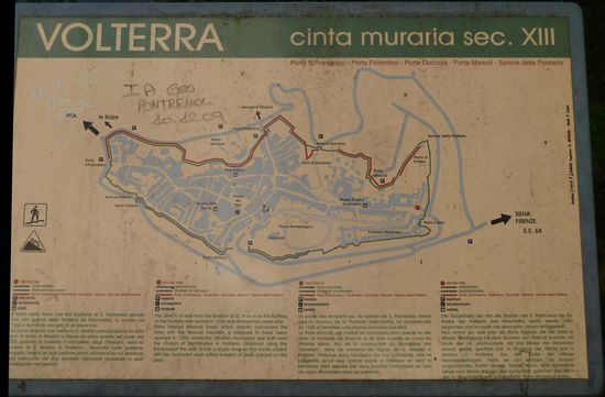 Dort finden wir auf Anhieb einen raffinierten kostenfreien Parkplatz, müssen allerdings eine steile Treppe hochklettern, um zum östlichen Stadttor (Porta a Selci) zu gelangen