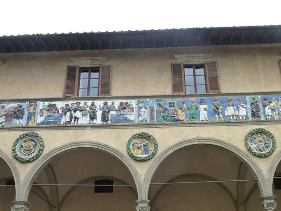 Das Hospiz, das schon 1287 existierte, weist eine Aussenloggia aus dem Jahr 1514 auf. Über dem Portikus schmückten zwischen 1511 und 1528 die Familien Della Robbia und Buglioni die Loggia mft einem Fries aus glasierter Terrakotta, welches die 7 Tugenden der Barmherzigkeit versinnbildlicht. Ein Teilstück davon zeigt auch die gastliche Aufnahme der Wallfahrer.