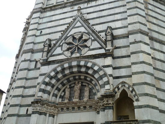 Im Inneren der Kirche befindet sich die wundervolle Kanzel von Giovanni Pisano (1298-1301), ein Taufbecken und ein Kruzifix aus bemaltem Holz, das ebenfalls Giovanni Pisano zugeschrieben wird. Die Fassadengestaltung ist wahrscheinlich ein Werk von Gruamonte und Adeodato, wie auch der Architrav von 1166, der die Reise der HL Drei Könige veranschaulicht - den ersten Pilgern der Christenheit.