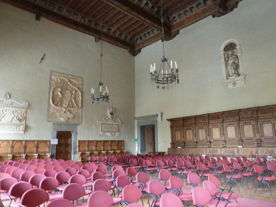 Gegenüber dem Palazzo Communale war der alte Silz des Gerichts - Palazzo Pretorio. Der freskierte Innenhof enthält noch einen steinernen Sitz und drei Treppenabsätze mit einem Tisch, an denen Gericht gehalten wurde.