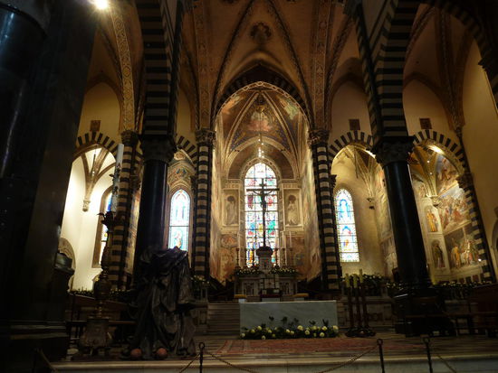 In Hauptkapelle ist der berühmte Freskenzyklus von Fillippo Lippi (1452-65) gegen Eintritt von 3€ zu bewundern. (es darf nicht fotografiert werden). Den Eingang zu einem Kreuzgang finden wird nicht.