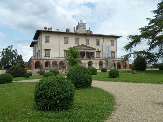 Also nochmals Planumstellung. Die Medici-Villa in Poggio a Caiano. Sie soll nach Internet auch montags geöffnet sein. Als wir die 15 km hinter uns gelegt haben, stellt Ulrike fest, das durch Umbauten am Museum steht, dass in diesem Jahr die Öffnungszeiten nur Mittwoch-Samstag sind.