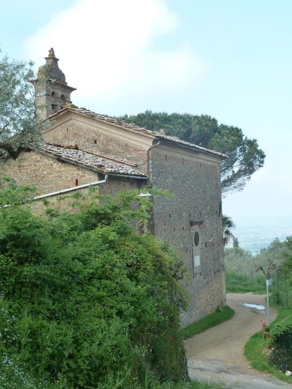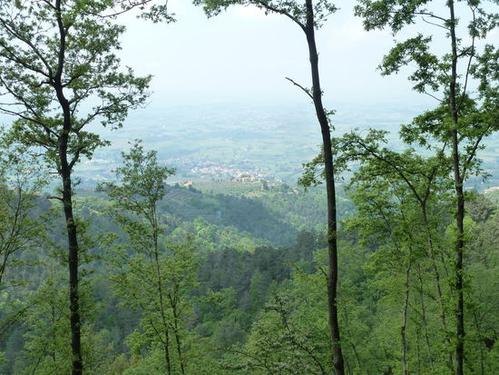 In Faltognano erreichen wir einen geteerten Weg, den wir aber nach Beschilderung nach einiger Zeit wieder verlassen und einen kaum erkennbaren Pfad laufen, der z.T. durch umgestürzte Bäume versperrt ist.