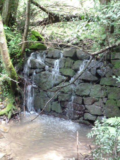 Die eingerichtete Umleitung führt steil bis zu einem Bach hinunter, den es über Stock und Stein zu überqueren gilt und dann (natürlich) wieder steil nach oben.