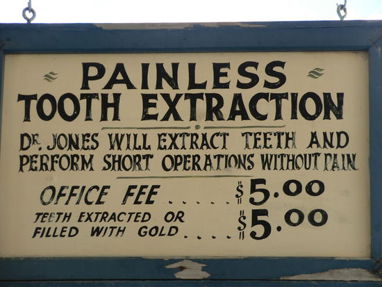 Einige Angestellte laufen in historischen Kostümen durch die Gassen und sprechen einen auch an, z.B. als wir die Zahnarztpraxis besichtigten:Oh - wenn der Zahn schmerzt kannst Du auch gegenüber in den Saloon gehen und einen 'Schmerzkiller' einnehmen!