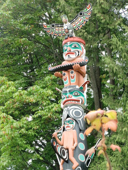 Wir fuhren dann zum Stanley-Park. Dort mußte man überall fürs Parken bezahlen. 3 $ für eine Stunde. Wir hielten einen Parkplatz weiter von den Totempfählen da dort alles besetzt schien.
