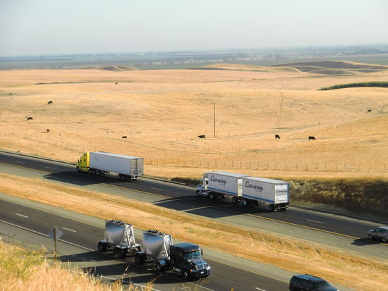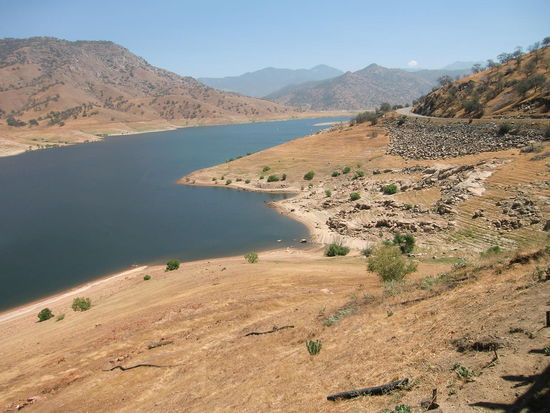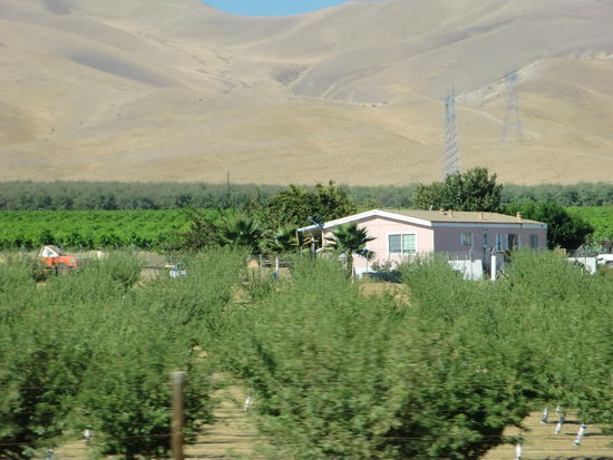 Abzweig zum Sequoia NP: endlos gerade Strasse, rechts und links - dank Bewässerung - Orangen- und Zitronenbäume.