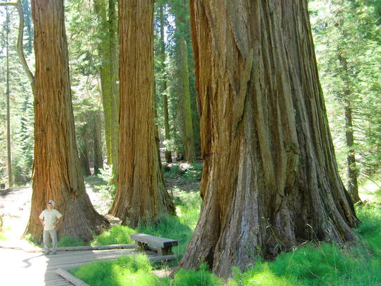 Vielleicht liegt es daran daß diese Bäume hier vereinzelt stehen in einem Mischwald. Die Küstenredwoods z.B. an der Avenue of the Giants stehen dicht an dicht und es gibt fast keine anderen Bäume dort. Das läßt das Ganze um so gigantischer erscheinen.