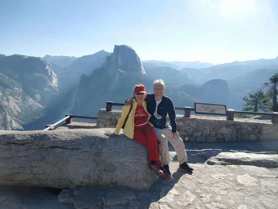 Im Yosemite NP war dass Kassenhäuschen morgens um 7 Uhr noch geschlossen; so fuhren wir in endlosen Kehren bergauf und dann rechts ab zum Glacier Point!