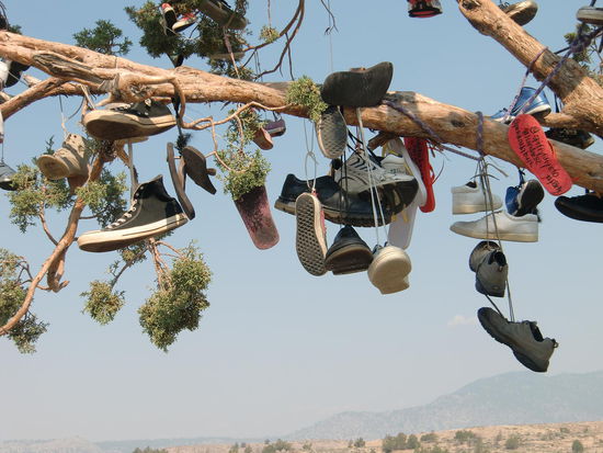 An der 'Grenze' zu Kalifornien war die Autobahn zu Ende und kurz danach auf dem Hwy. entdeckten wir am Strassenrand diesen 'Schuhbaum'!