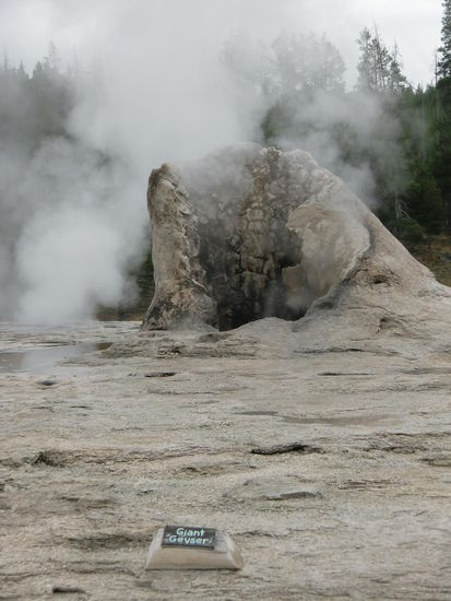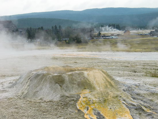 Auf ihn ist Verlass! Old Faithful bricht ca. alle 90 Min aus und schießt heißes Wasser 30-55m hoch für 1 1/2 bis 5 Minuten und schafft so um die 14.000-32.000 Liter Wasser an die Oberfläche.