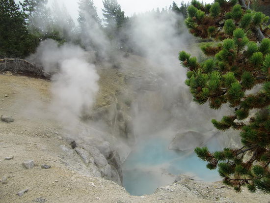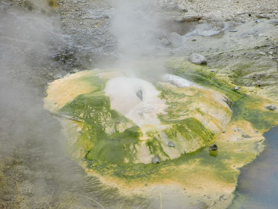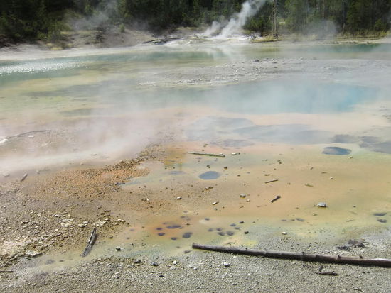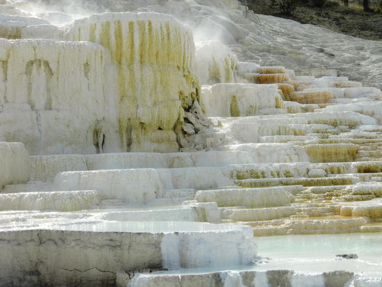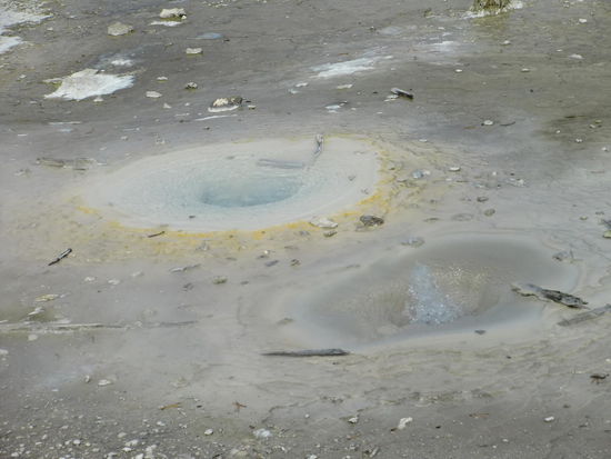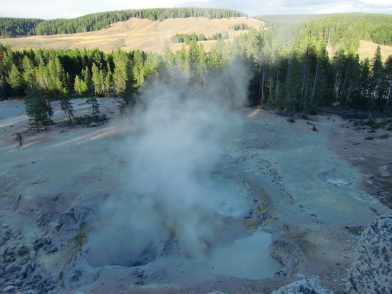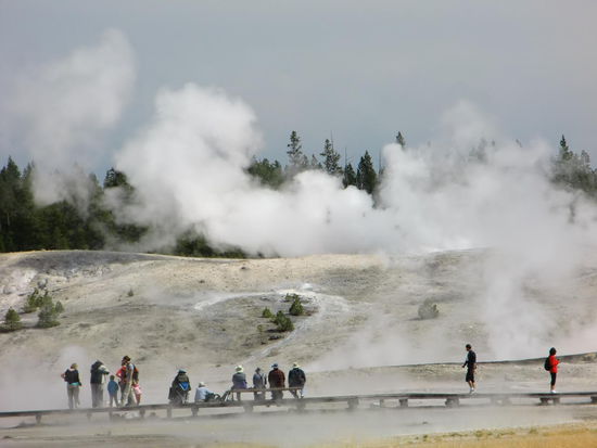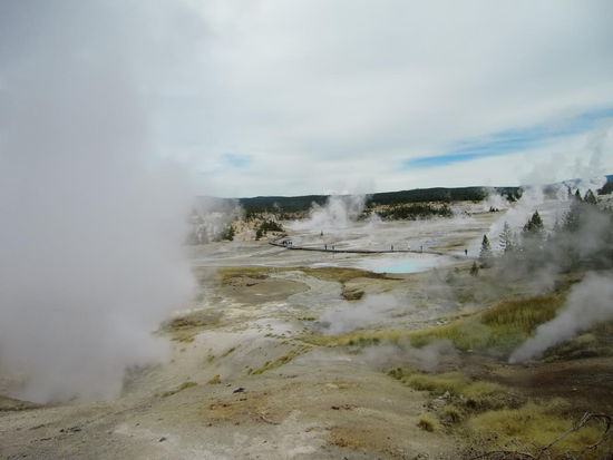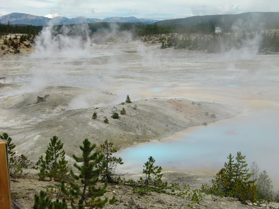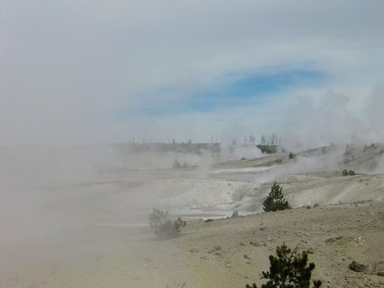 Völlig entspannt schritten wir zur Besichtigung des Procelain Basin bei Norris. Schön ist es dort wenn die Sonne scheint, denn dann kommt das Porzellan-Weiß der Umgebung gut zur Geltung!