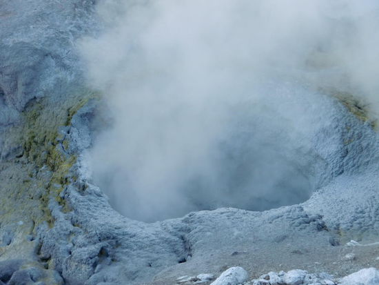 Der Wald wurde plötzlich unterbrochen und man sah einen weißen Berghang und überall kamen Rauchschwaden heraus und der Bergg 'grollte'!!!!