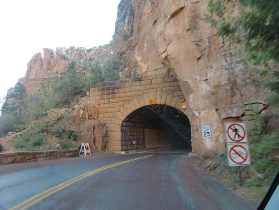 Erst einmal ging es ständig bergauf und dann mußten wir durch einen Tunnel und fuhren bis Page.