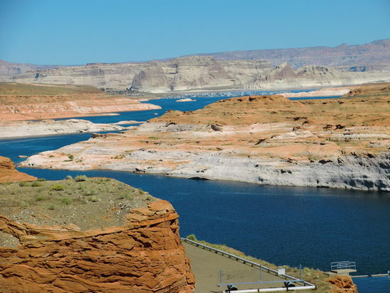 Bis mir eine Deutsche erzählte daß der Wasserspiegel des Lake Powell seit Jahren erheblich sinkt und die Seefläche früher mal ganz oben war wo heute die Toiletten noch stehen!
