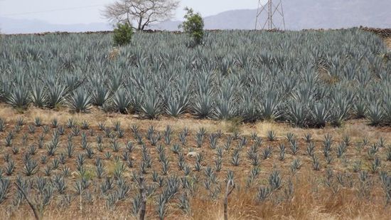 Gleich nachdem wir die Grenze zum Staat Jalisco überqueren, sehen wir die ersten Felder mit 'blauen Agaven' am Strassenrand.