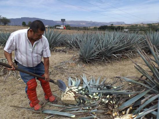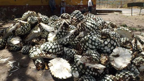 werden erst geröstet, dann fein gemahlen, bevor mittels Wasser und Wasserdampf Zucker und Stärke extrahiert wird. Wenn kein '100% Agave' produziert werden soll wird für den sogenannten 'normalen' Tequila bis zu 49% Fremdzucker zugesetzt, bevor die Maische eingekocht und dann 26 Std. lang fermentiert wird. Die dabei entstehende, ca. 8% Alkohol enthaltende Flüssigkeit, wird je nach zu erzielender Qualität bis zu 3* destilliert und bis zu 12 Jahre in Eichenfässern gelagert.