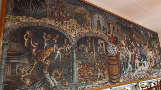 Vor die Wahl gestellt, bei welcher der beiden grossen Brennereien rechts und links vom Hauptplatz wir unsere Tour machen sollen, bei Jose Cuevo oder beim weniger durchgestylt erscheinenden Casa Sauza, entscheiden wir uns letzteren, was sich letztendlich für uns als die richtige Wahl erweist. Wir sind um 15h die einzigen englisch sprechenden Gäste und so bekommen wir eine Privatführung. Da wir für M$150 die grosse Tour mit Agavenfelder und Brennerei gewählt haben (nur Brennerei M$100) fahren wir mit Fahrer und 2 Führerinnen erst einmal ein kleines Stück raus aus der Stadt zu einer Mischung aus Botanischer Garten und Agavenplantage.
