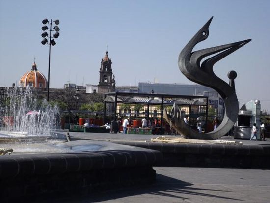In dieser 1,5 Mio Einwohner Stadt parken nahe dem Zentrum in einem Parkhaus mit Valet Service, also Schlüssel abgeben und das Auto wird von Angestellten geparkt, kein Fremder kommt eigentlich an die Fahrzeuge ran, wir fühlen uns eigentlich sicher und ziehen los. Am Plaza Tapatia finden wir neben diesen Kunstwerken