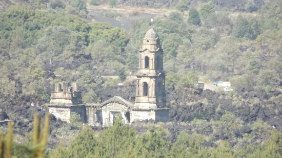 mit seinen Lavaströmen die Dörfer zu seinen Füssen zerstörte, wobei einer der Lavaströme quer durch diese Kirche verlief.
