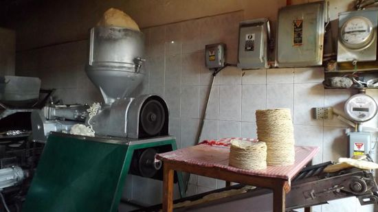 geht es weiter zum Markt, wo wir lernen wie Tortillas maschinell in Kleinserien hergestellt werden. Oben kommt ein Batzen Teig rein, der wird gewalzt und gestanzt, die rohen Teigfladen wandern auf einem Förderband viermal durch den Backofen