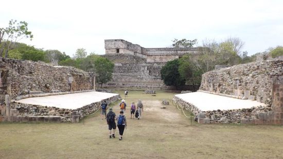 der dank einer ausgeklügelten Kombination von Topes und Vibradores seinem Namen alle Ehre macht, erreichen wir die Grenze zu Yucatan. Hier geht es noch vorbei an den Ausgrabungen von Kabah