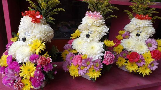 Am nächsten Tag dann in Merida, der Hauptstadt von Yucatan, haben wir kaum das Auto abgestellt, als wir schon in einem Blumenladen diese Bärenfamilie entdecken.