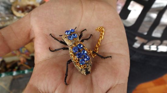 Wir gehen noch zum Markt, lernen irgendwann, dass es einst als vornehm galt sich mit solchen Käfern zu schmücken