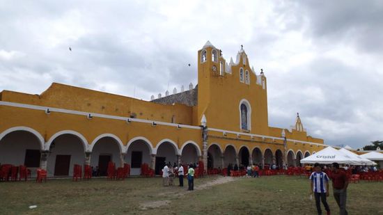 ist zwischen alten Maya Ruinen erbaut. Die Wallfahrtskirche in Ockergelb wie eigentlich die ganze Stadt, wurde einst auf einer Pyramidenplattform erstellt,