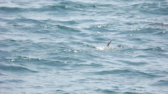 legen ab, werden noch von einigen Delfinen verabschiedet,
