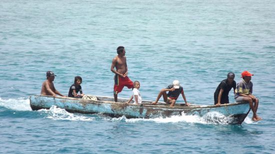 Lokale Fischer bringen schon mal unser Abendessen vorbei,