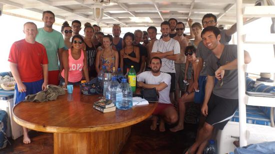 Gegen 20h geht es dann mit der Barkasse zurück zum Boot, man sitzt noch eine Weile zusammen, feiert und schläft dann irgendwann, irgendwo an Deck, denn hier ist es viel kühler/angenehmer als drunten in den Kabinen.