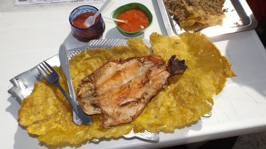 verkauft oder frisch aufgebrüht serviert. So gestärkt geht es nun wieder bergauf und weiter in die Stadt zur Mittagspause bei Forelle auf plattgewalzter, frittierter Kochbanane.