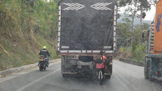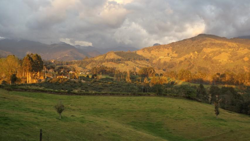 die von der Innenstadt hier hochführt, während die Stadt selbst bereits im Frühdunst versinkt. Die Durchquerung der Stadt von Nord nach Süd macht nur bedingt Spass, schwere LKW in allen Spuren, dazu Ampeln, Bausstellen und liegengebliebene Fahrzeuge. Wir sind froh irgendwann die Stadt hinter uns gelassen zu haben und wieder durch weniger dicht besiedeltes Land fahren zu können. Manizales, angeblich eine gesichtslose moderne Grossstadt umfahren wir großräumig und fahren auf der Autopiste Del Cafe durchs Land der Kolumbianischen Kaffeeplantagen.
