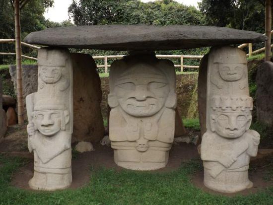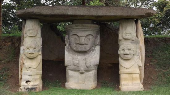geht es weiter zum CP bei San Agustin, ein kleines Städtchen in den Bergen, in dessen Nähe sich einige interessante Ausgrabungen aus präkolumbianischer Zeit befinden. Morgens wandern wir erst einmal 2,5km zur zentralen Ausgrabungsstätte mit angeschlossenem Museum, bezahlen zu unserer grossen Überraschung nur den Eintritt für Einheimische von COP 10.000pP, denn die 'Ausländertickets' über COP 20.000 sind eben mal ausgegangen. Drinnen in der Anlage solche 2000 Jahre alten Steinskulpturen als Wächter von Gräbern, die sehr an die Dolmen in der Bretagne erinnern.