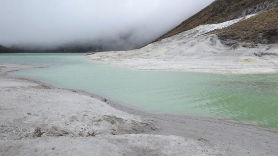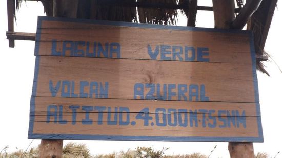 Knapp 200m tiefer schimmert die Laguna Verde, der Kratersee.