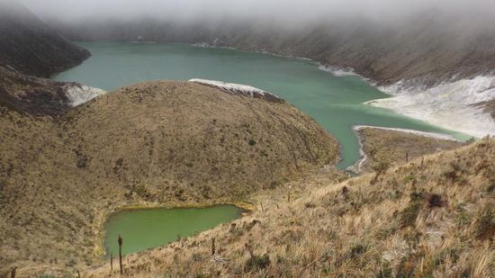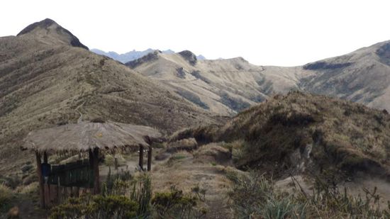 wo auch noch auf über 3000m Höhe Landwirtschaft betrieben wird. In Pasto wird bereits die Nähe zu Ecuador spürbar, der Diesel Preis fällt schlagartig von COP 8.900/Galone auf COP 6.000/Galone, Grund genug noch etwas aufzutanken, denn wir wollen ja noch auf den Volcan Azufral . Dazu verlassen wir die Pamamericana Richtung Westen und klettern bei Tuquerres mit dem Auto auf einer schmalen Piste zum Besucherzentrum auf 3.700m hoch. Hier bezahlen wir den Eintritt in den Park COP 1.000pP und COP 5.000 für den Stell/Parkplatz, grillen wir uns erst einmal ein mitgebrachtes Steak und machen uns dann für die Nacht fertig. Morgen wollen wir uns auf die 12km lange Wanderung zur Laguna Verde machen und dabei nach East Tibet unseren zweiten 4000er bezwingen. Gegen 9 Uhr brechen wir zu dieser insgesamt 12km langen Wanderung, gehen auf einem 'Almweg' stetig bergauf und sind schon 75 Minuten später am Kraterrand des Volcan Azufral.
