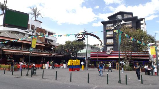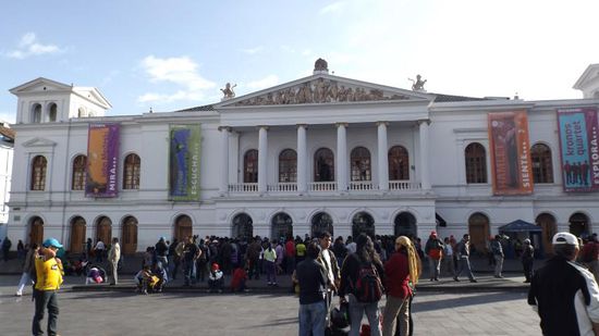 Heute Morgen ist Schluss mit Lustig, wir reisen weiter nach Quito, wobei die Fahrt dank einiger Baustellen und noch unfertiger Strassen doch etwas komplizierter wird, als wir und Garmin uns das vorgestellt hatten. Letztendlich half ein Tipp von Max: 'am Flughafen im letzten Kreisverkehr der dritten, unbeschilderten Ausfahrt folgen' und wir erreichten irgendwie die Innenstadt von Quito. Der nächste Tipp, von unseren Camperfreunden Siggi & Siggi verhalf uns zu einem bewachten SP mitten in Innenstadt von Quito ($10/24h) und der Stadtbesichtigung stand nichts mehr im Wege. Da wir schon mal in der New Town sind, gehen wir erst mal zur Plaza Foch,