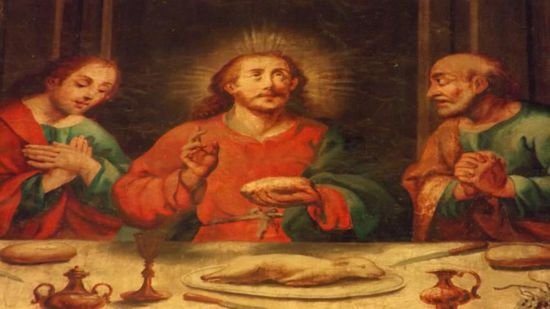 und dort sofort in die gestern Abend schon geschlossenen Kathedrale (E=$2pP), denn diese Abendmahlsbild, bei dem Jesus seinen Jüngern Meerschweinchen serviert,