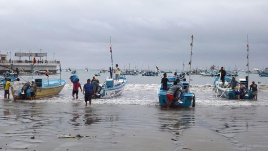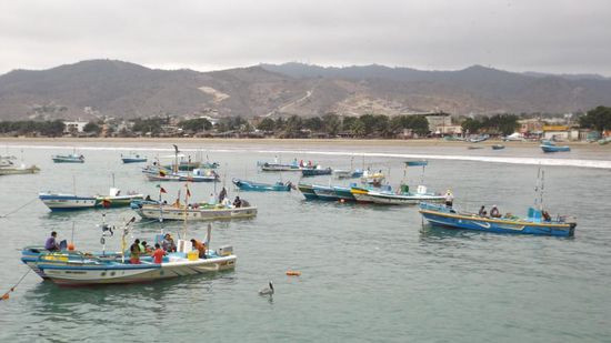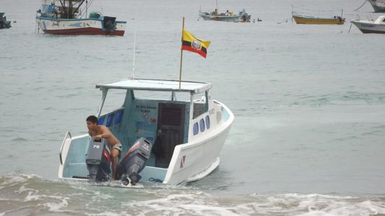 Frisch gestärkt fahren wir weiter, kommen an Puerto de Cayo vorbei und erreichen schliesslich Puerto Lopez, wo wir am Strand den Fischern beim Auslaufen zusehen,
