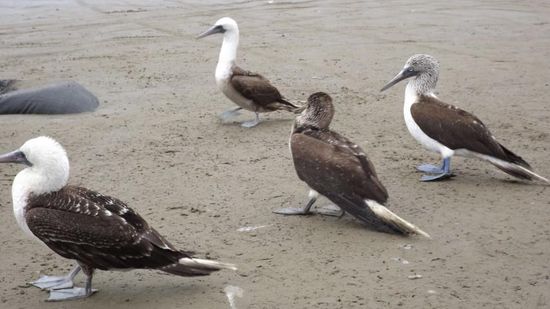 Pelikane und Blaufuss-Tölpel beim Nichtstun stören,