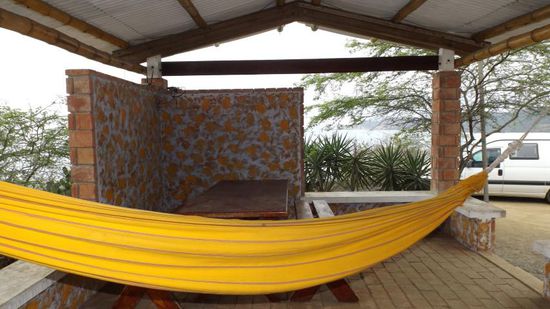 wo wir beim Restaurant Pelikano eine Walbeobachtungstour nach unserer Vorstellung bekommen ($30pP, da keine weiteren Gäste). Wir fahren noch 2km weiter auf den CP des Hostal Islamar - und sind schon wieder einmal im Paradies gelandet. Hier ragt eine Landzunge ins Meer, darauf ein kleines Hotel und dazu auf dem Hügel verteilt einzelne Stell-/Zeltplätze, dazu solche "Unterständen' mit Tisch/Bank/Hängematten und WiFi,