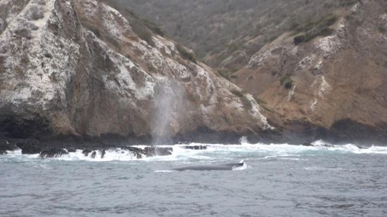 doch kaum sind wir 10 Minuten gefahren, sehen wir auch schon die ersten Wale,