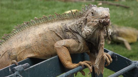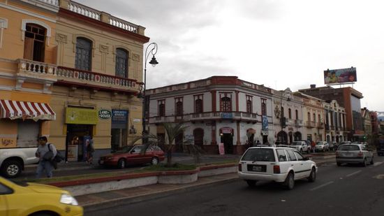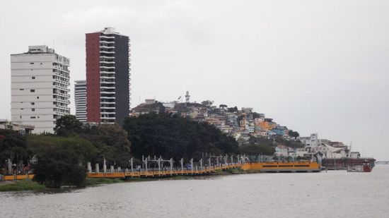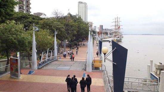 Am nächsten Tag fahren wir erst einmal die Küste entlang Richtung Süden, das Wetter ist heute leider 'grau in grau', so dass weder die Strände noch die Ortschaften einladend wirken. Bei Santa Elena biegen wir Richtung Osten ab und erreichen gegen Mittag Guayaquil, mit 2,4Mio Ew. die groesste Stadt Ecuadors. Direkt neben der Kathedrale, mitten in der Stadt, finden wir einen freien Parkplatz am Strassenrand und machen uns gleich an die Stadtbesichtigung. Im Parque Bolivar laufen riesige Leguane genauso frei herum, so wie in München die Eichhörnchen und auch hier ist streicheln und füttern verboten,