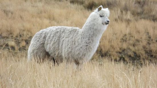 sehen dort ein paar friedlich weidende Lamas,