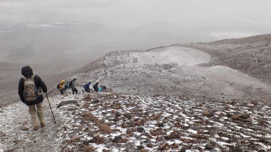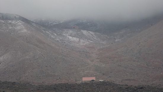 und erreichen den Parkplatz auf 4850m (neuer Höhenrekord für unser Auto). Hier in der Nähe liegt bereits ein erstes Refugio, ein zweites liegt etwa 200m höher und obwohl beide derzeit wegen Renovierungsarbeiten geschlossen sind, bleibt zumindest der Wanderpfad dazwischen geöffnet.