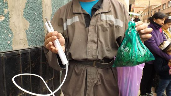 wo wir von Guide und Fahrer erwartet werden. Zuerst einmal geht es nun ins Warehouse, wo wir Helm, LED-Grubenlampe, Arbeitsjacken und -hosen, sowie mit Gummistiefeln ausgerüstet werden. Dann geht es zum Minersmarket, wo normalerweise die Miner ihre Bedürfnisse eindecken, wo wir unter Anleitung unseres Führers Mitbringsel / Geschenke für die Miners einkaufen. Wir entscheiden uns für Dynamit und Coca Blätter,