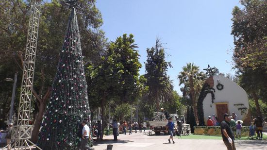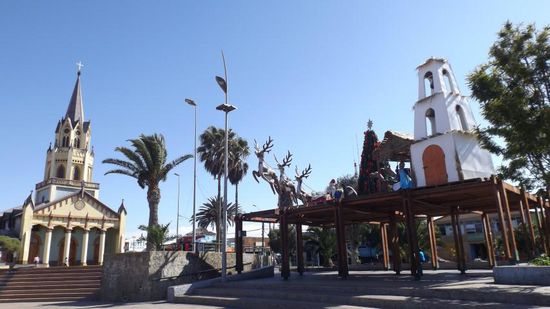 Am nächsten Morgen noch eine schnelle Runde durch Copiapo, der Weihnachtsbaum von Palmen beschattet,
