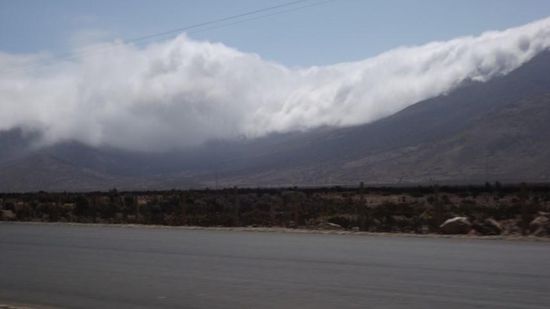 Es geht vorbei an Vallenar, hoch auf 1800m, runter auf 450m, Küstennebel zieht die Berge hoch.