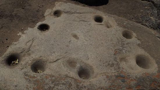 zum anderen zahlreiche Tacitas = Mörserlöcher,